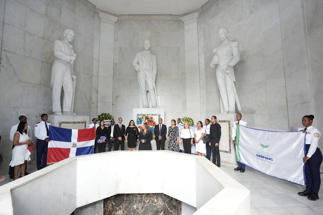 SANTO DOMINGO.-El Instituto Superior Especializado de Estudios Penitenciarios y Correccionales (ISEEPENC) depositó una ofrenda floral en el Altar de la Patria, con motivo a la graduación de la vigésima octava promoción del Programa de Formación de Agentes de Vigilancia y Tratamiento Penitenciarios (VTP), en el marco del vigésimo primer aniversario del ISEEPENC. Esta actividad fue presidida por la directora general, Gladys Esther Sánchez Richiez, acompañada de los miembros del Consejo Academico, funcionarios, docentes, colaboradores del Instituto y los aspirantes a Agentes de Vigilancia y Tratamiento Penitenciarios (VTP).